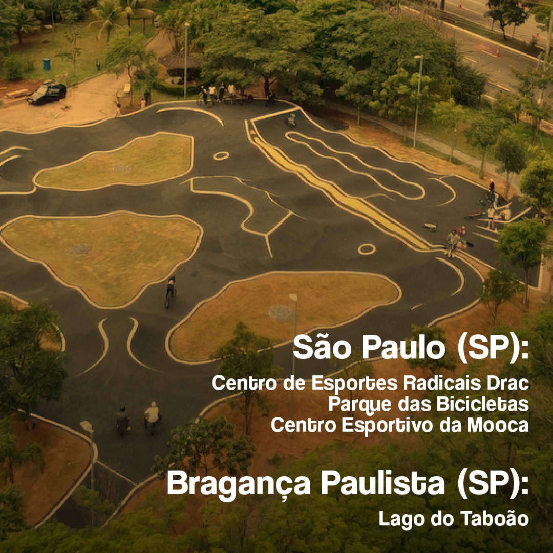 “É a cidade com a maior concentração de pistas públicas do Brasil, com três arenas. Tem a do bairro Bom Retiro, que foi o primeiro complexo de pistas do País, para os níveis iniciante, intermediário e avançado, mas que precisa de manutenção. No Parque das Bicicletas, na esquina da República do Líbano com a Av. Ibirapuera, também tem uma pista completa para todos os níveis. E o recém-inaugurado Pump Park, na Mooca, com nível mais avançado com obstáculos para freestyle.”